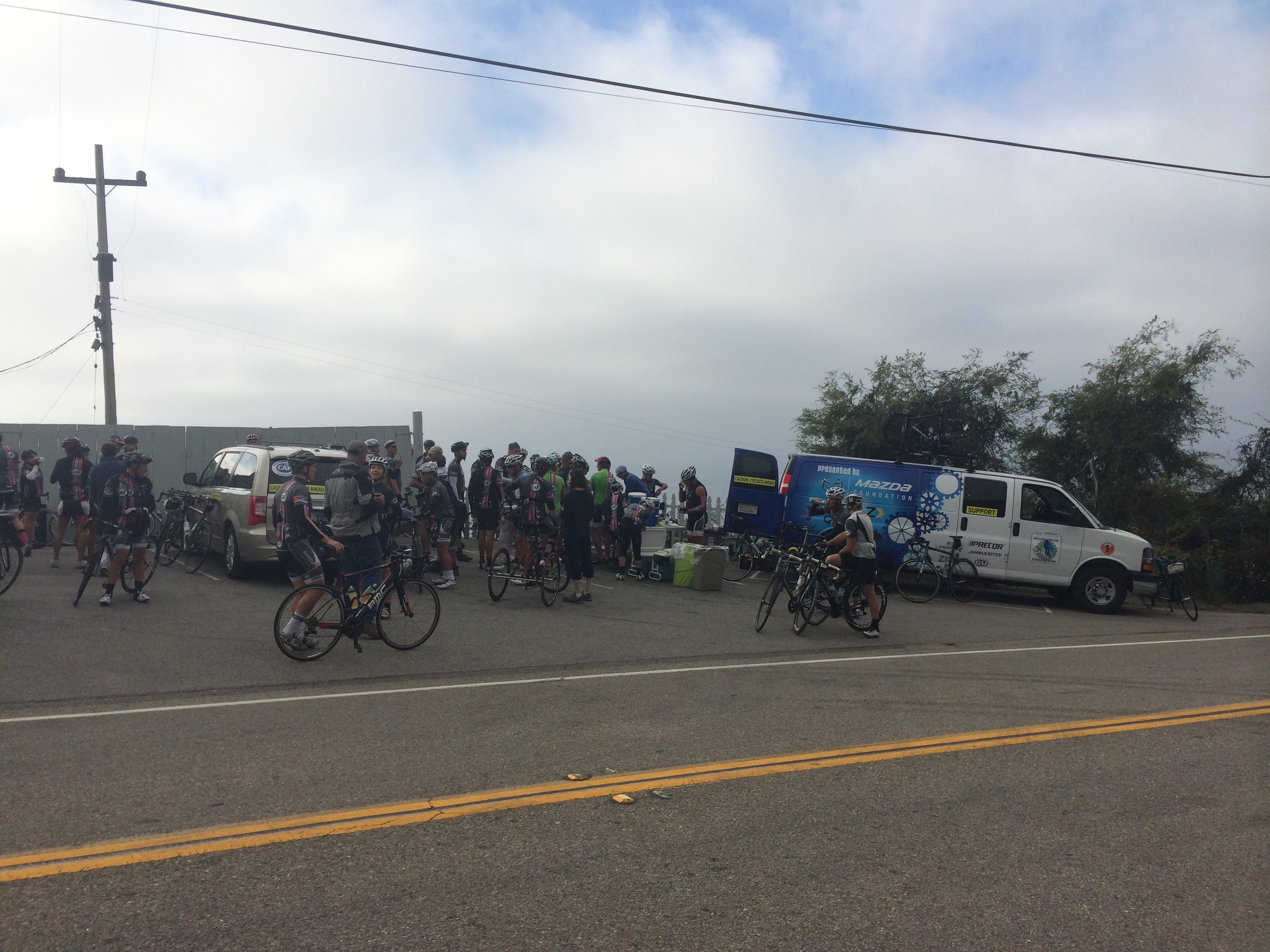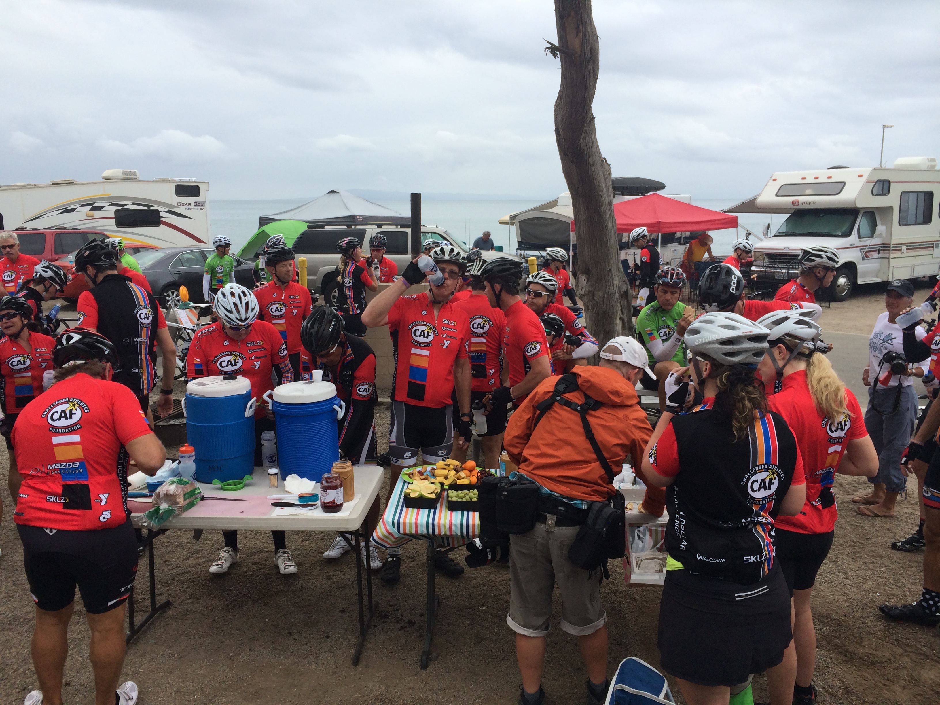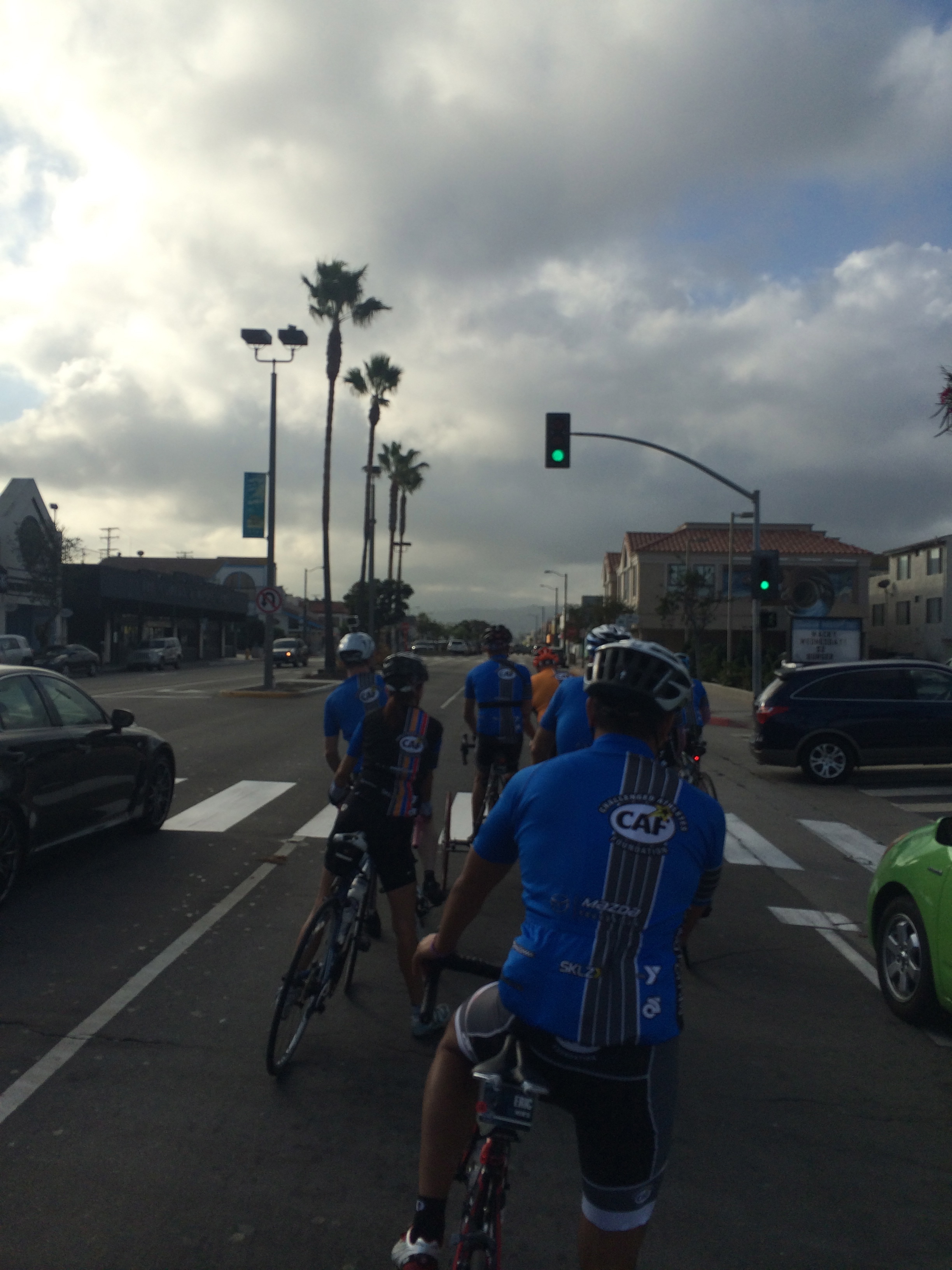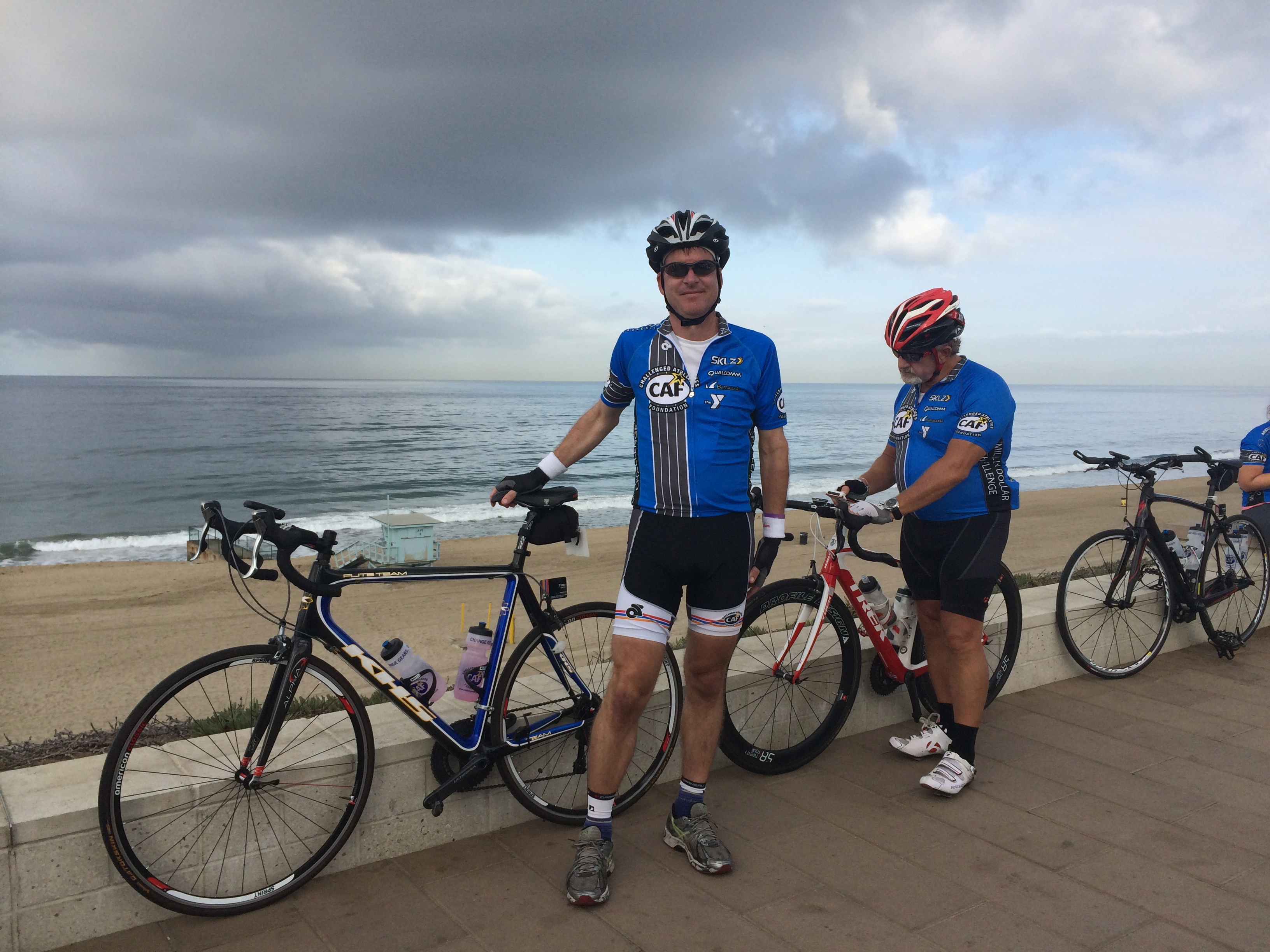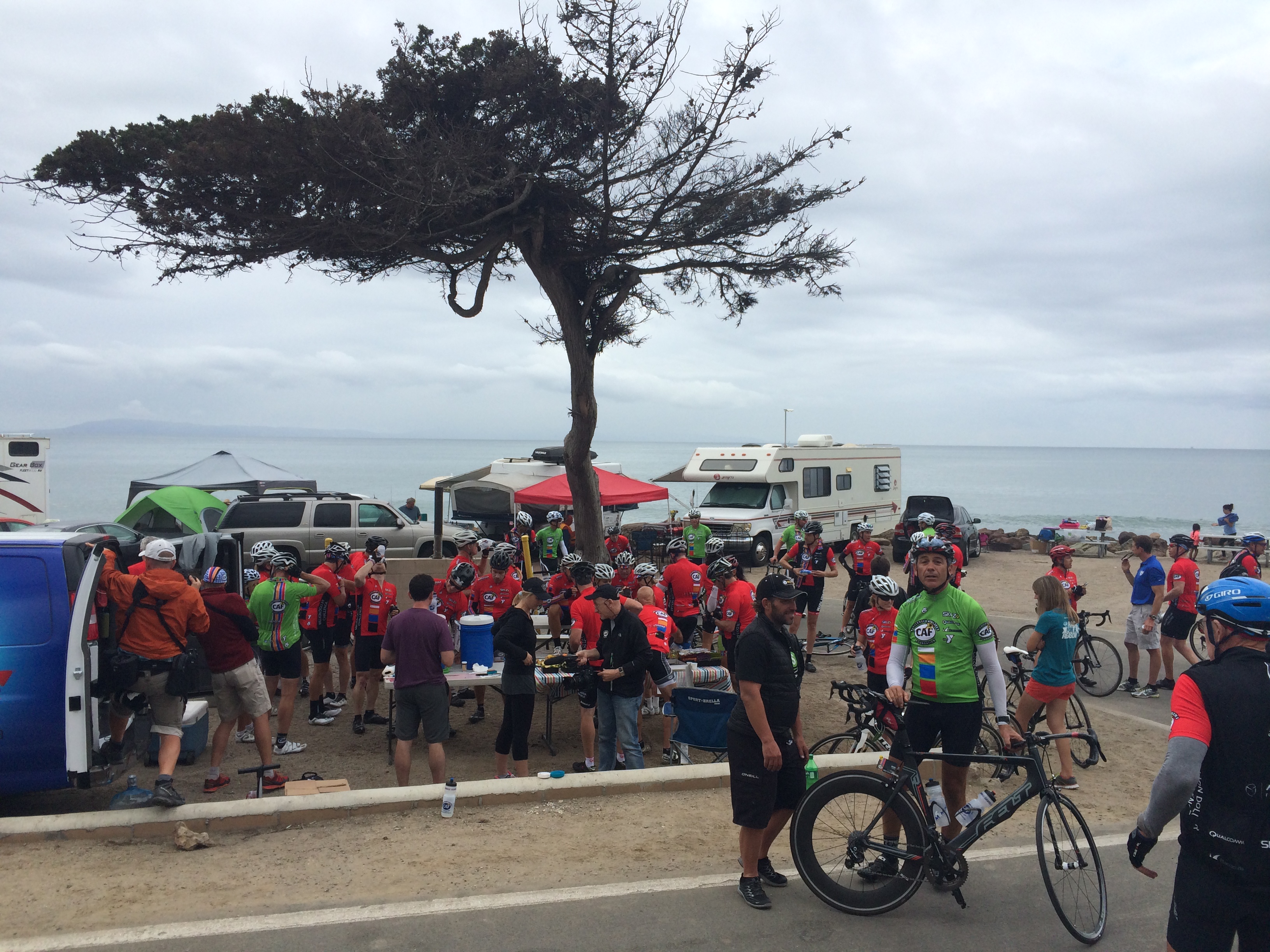 They warned the first timers that we might not like the ride until after the 3rd or 4th day for many obvious reasons. They say the body is at its low by the end of the 3rd day and I really do think they have that timing down pretty well! My pt is we are now in Santa Monica! Its like xmas! Too bad Bret left town to avoid seeing me. We are way over half way and I know the names of all the streets! AND ROBERTOS is only like 200 miles away by bike! That actually seems like nothing to me! I will say getting medic-d out was one of the best things that could have happened to me as I got to catch a ride with one of the nicest people I have ever met. She is a CA rider with so many many things going on and my god she just sat their smiling at me and asking me tons of questions. The overall trip has really changed my perspective on a lot of things first of which this isn’t about me it’s about them. The CAF staff is so thankful everyday for the donations you all made–they are still coming in–that it makes u realize its about the overall experience NOT just the ride. That is only one component albeit a major one–think of one of my original posts telling you the mantra of the ride– #morethanaride. Man I am really growing I should become a motivational speaker! Anyway, my tiny piece of advice before the pictures is–when you all do your “ryloride” it makes you feel very good when you combine a crazy intense ridiculous endeavor (meaning mine!) with a charity like the CAF. It seems right.