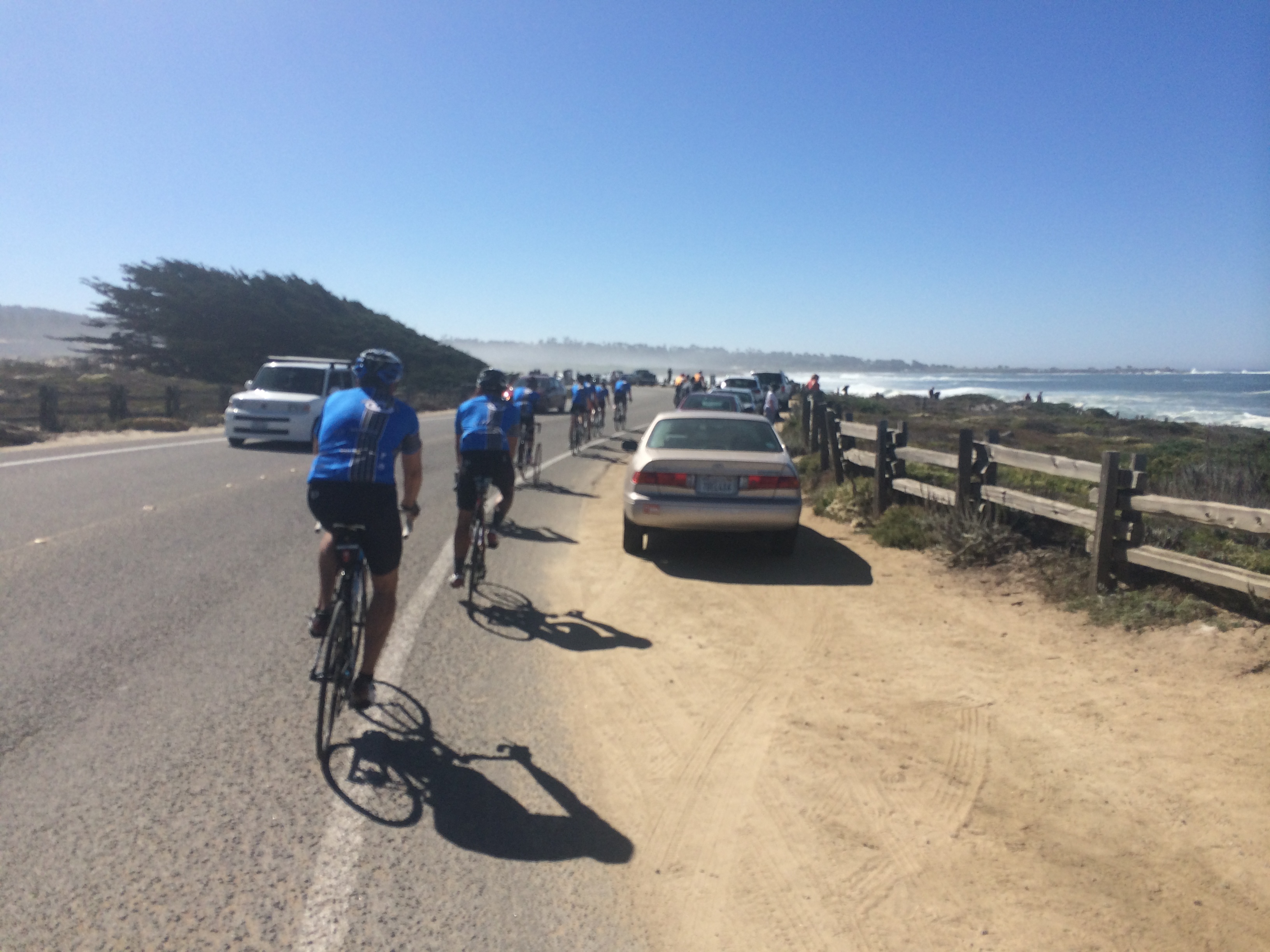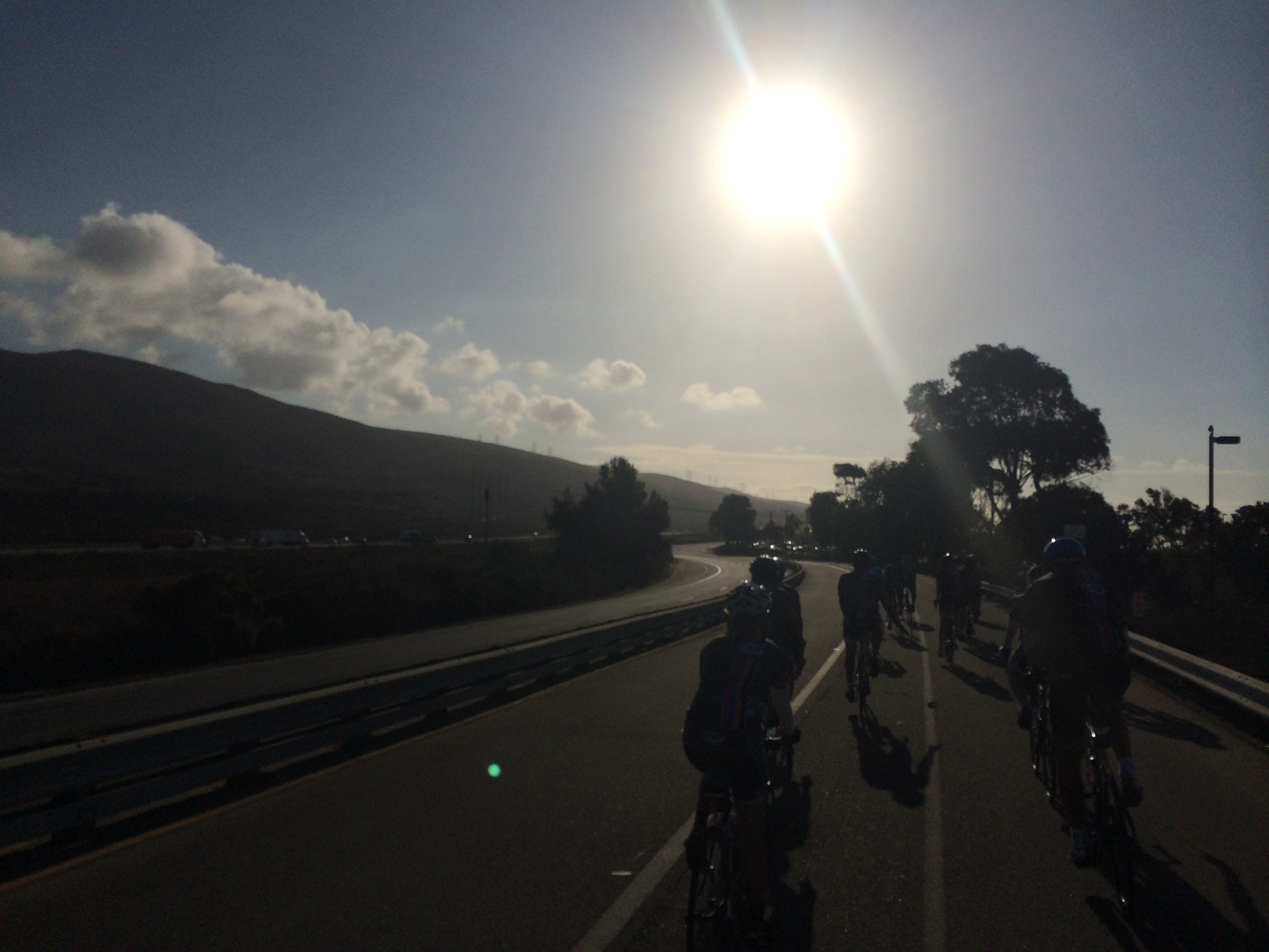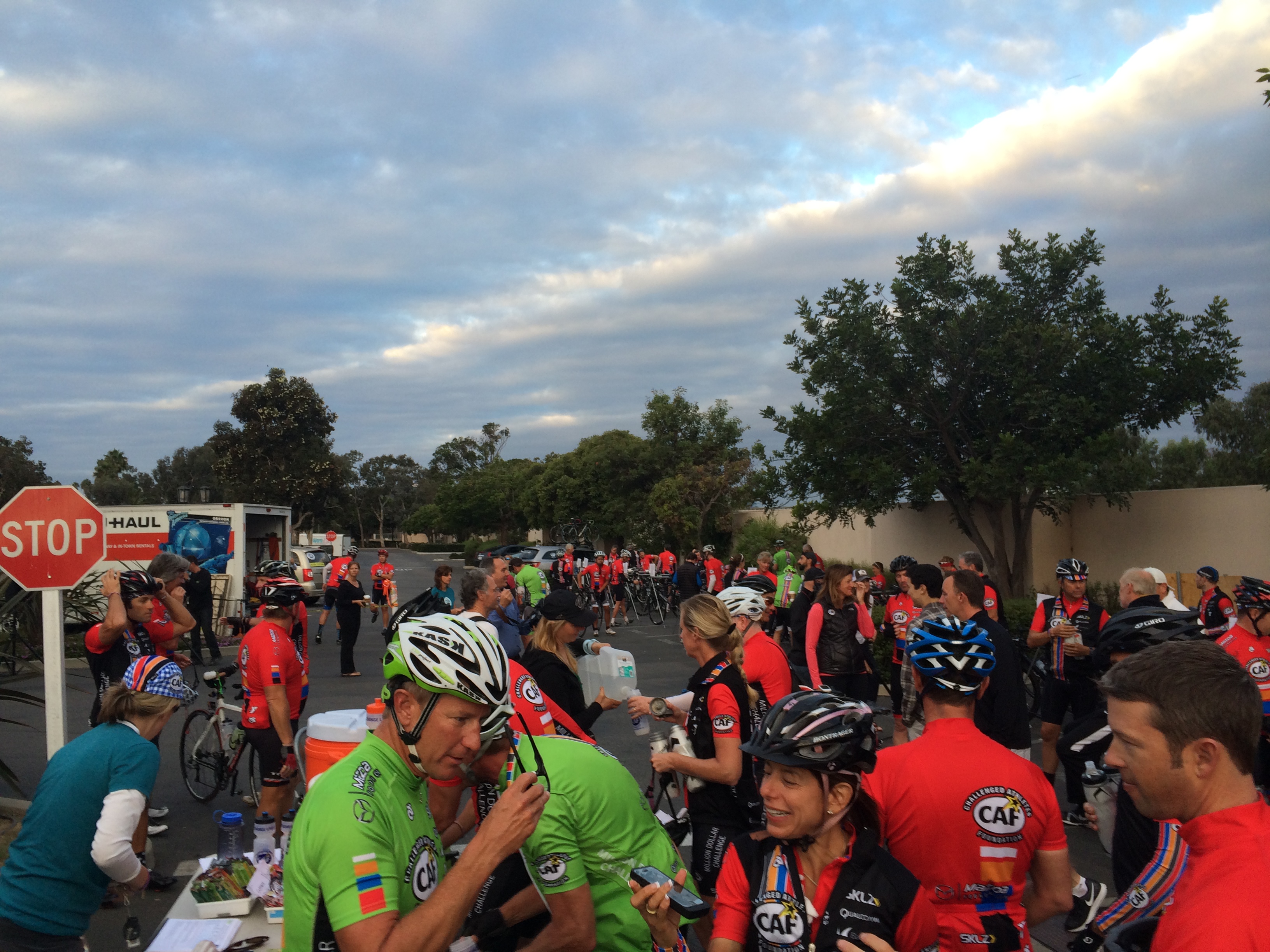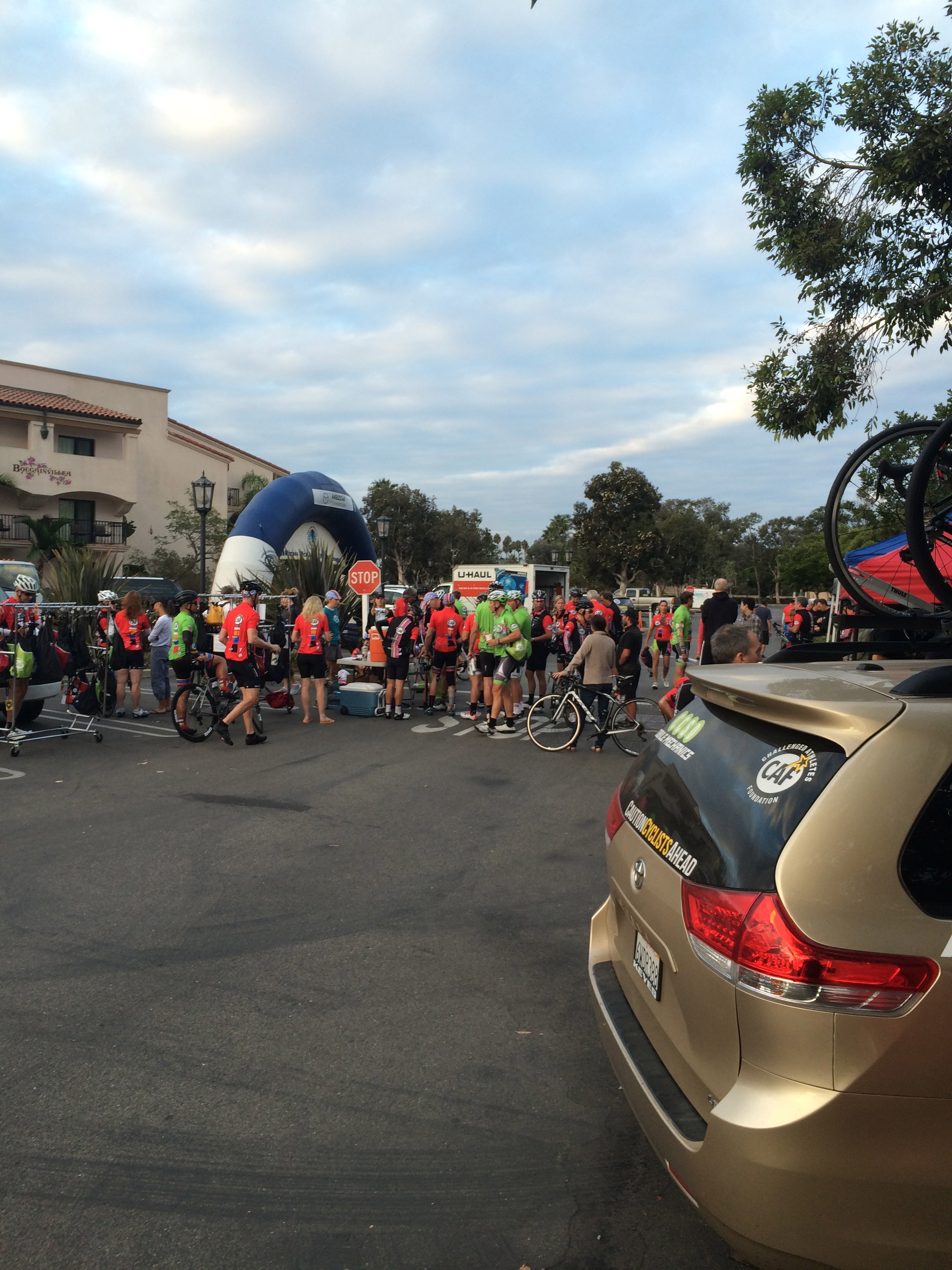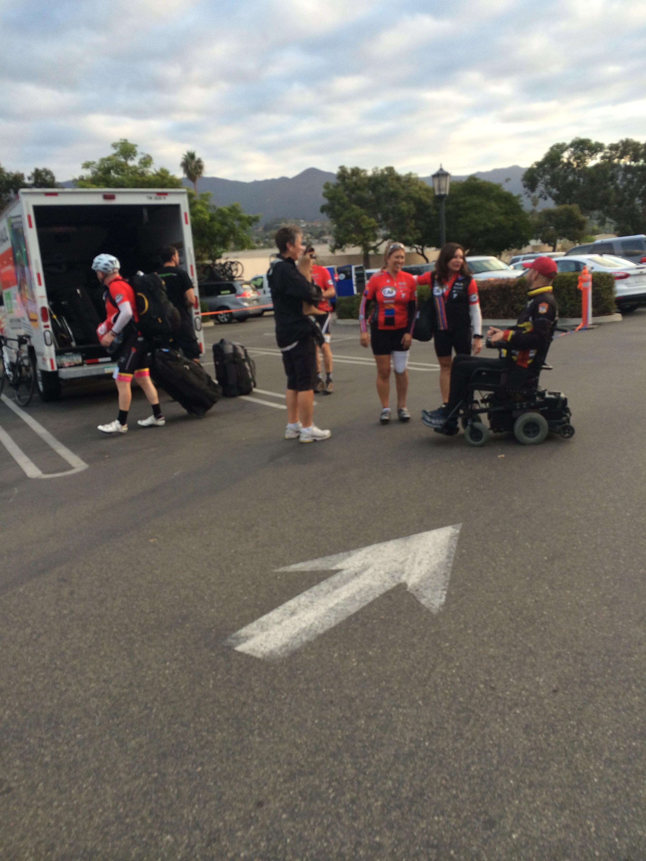 They warned the first timers that we might not like the ride until after the 3rd or 4th day for many obvious reasons. They say the body is at its low by the end of the 3rd day and I really do think they have that timing down pretty well! My pt is we are now in Santa Monica! Its like xmas! Too bad Bret left town to avoid seeing me. We are way over half way and I know the names of all the streets! AND ROBERTOS is only like 200 miles away by bike! That actually seems like nothing to me! I will say getting medic-d out was one of the best things that could have happened to me as I got to catch a ride with one of the nicest people I have ever met. She is a CA rider with so many many things going on and my god she just sat their smiling at me and asking me tons of questions. The overall trip has really changed my perspective on a lot of things first of which this isn’t about me it’s about them. The CAF staff is so thankful everyday for the donations you all made–they are still coming in–that it makes u realize its about the overall experience NOT just the ride. That is only one component albeit a major one–think of one of my original posts telling you the mantra of the ride– #morethanaride. Man I am really growing I should become a motivational speaker! Anyway, my tiny piece of advice before the pictures is–when you all do your “ryloride” it makes you feel very good when you combine a crazy intense ridiculous endeavor (meaning mine!) with a charity like the CAF. It seems right.