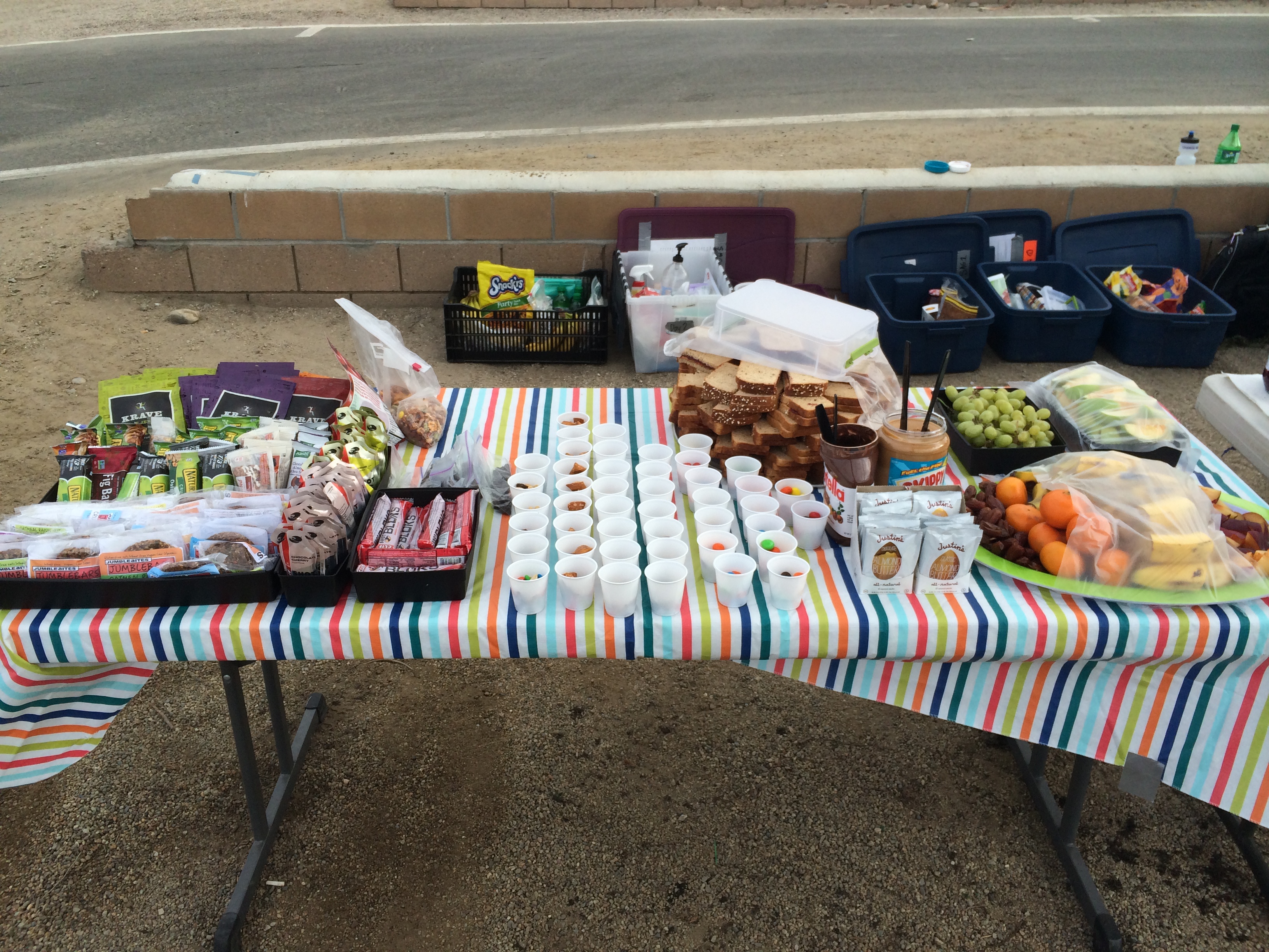 Pictures: todays are trying to capture the morning going ons which are pretty hefty given the 100 riders/30 support staff and tons of trucks. I have our arch, some ride outs, some pre ride eating/staging/talking/our first sag–about as scenic as it gets–along with people rolling in and out/one of the 3 tables at each sag. Oh yeah see the guy getting the massage at lunch? yeah, u can do that.